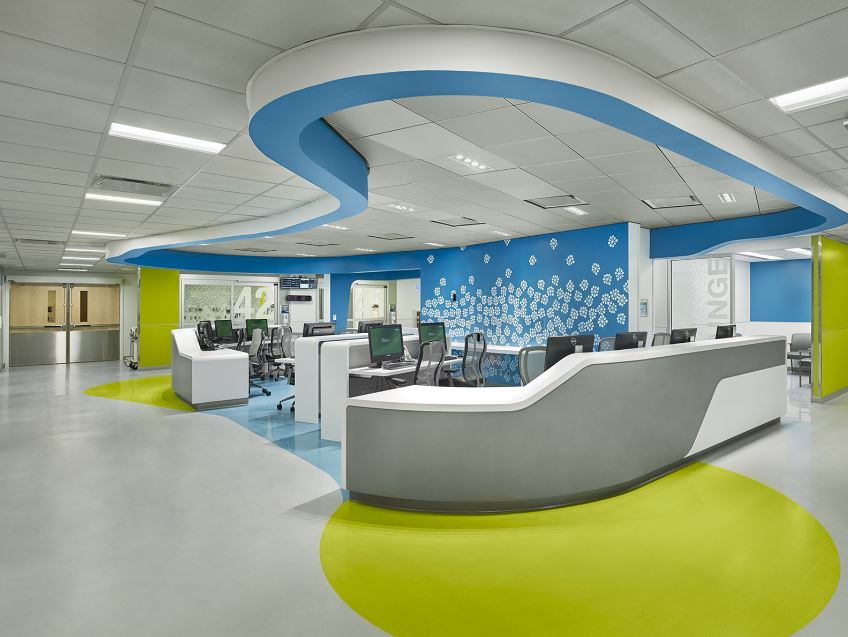 Mainline wanted to implement a pediatrics program that would combine learning, play and the opportunity to interact with patients in a more creative way. From the activity and game sheet patients receive at check in, to the visual puzzle art with different themes in each room, to the cloud shaped animals above patient beds, this project invokes the senses and connects to many ages. The result is a whimsical experience in every patient room.